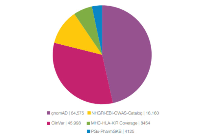 Clinical research content in v3.0 includes variants with established disease associations, relevant pharmacogenomics markers, and curated exonic content derived from ClinVar, NHGRI, PharmGKB, and ExAC databases.